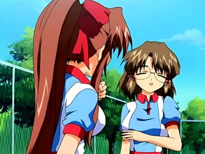 Anime-Mädels spannen einen Schwanz. Anime-Mähdchen spannen einen Schwanz mit ihren großen Titten