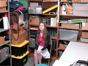 Eine rothaarige Süße wird einer Leibesvisitation unterzogen, nachdem sie beim Stehlen erwischt wurde.Der Sicherheitsbeamte streichelt sie und fordert sie auf zu kooperieren, um nicht ins Gefängnis zu gehen.Sie bläst seinen großen Schwanz, dann liegt er au