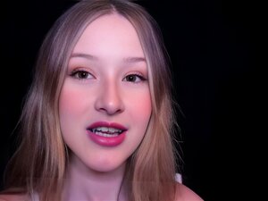Die flirtende, goldhaarige Süße mit Zahnspange spielt vor der Kamera mit ihren Bazookas