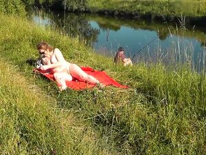 Ausgezogene Stiefmutter am Fluss, die ich gerne ficken würde, sonnt sich und ist nicht schüchtern wegen eines zufälligen Fischers. Draußen. Wilder Strand. Öffentliche Nacktvideos - Tube8