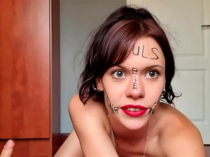 Kehlige Süße bekommt ein Facial. Halsgefesselte Süße Sklavin bekommt ein Facial nach gefesseltem Fick