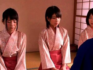 Japanische Geishas lutschen Schwänze in einem asiatischen Vierer