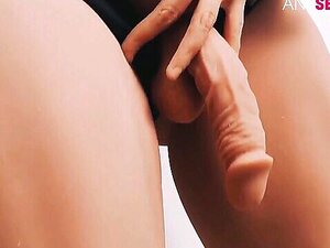 Trainieren mit einem großen gefälschten Penis. Explizite und unersättliche Vulva-Leckagen für verführerische Deichhonige